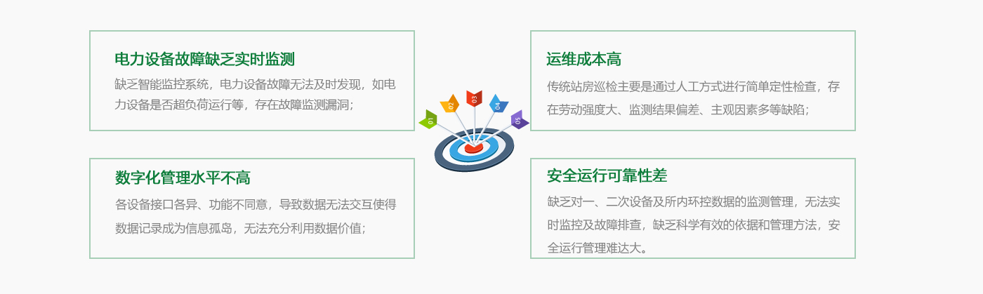 鐵路電力運維管理系統(tǒng)采用電力監(jiān)控、電氣安全、電能質(zhì)量、用能管理、視頻監(jiān)控、輔助監(jiān)控、資產(chǎn)管理等一體化功能設(shè)計,實現(xiàn)對鐵路變配電所的全方位監(jiān)管,具備遙測、遙信、遙控、SOE事件記錄、故障錄波、遠(yuǎn)程整定參數(shù)等功能,對電力運行狀態(tài)實時采集及監(jiān)視,全數(shù)據(jù)分析判斷,預(yù)案處理;集成運行維護(hù)管理、資產(chǎn)管理、環(huán)境監(jiān)控、門禁監(jiān)控、煙感監(jiān)控、視頻監(jiān)控等功能;用戶可通過后臺系統(tǒng)實時掌握變配電所整體運行狀況、獲取各類預(yù)警、報警事件,滿足電力無人或少人值守的需求,為用戶提供有效的專業(yè)技術(shù)保障及運維支撐,提高系統(tǒng)安全運行水平。