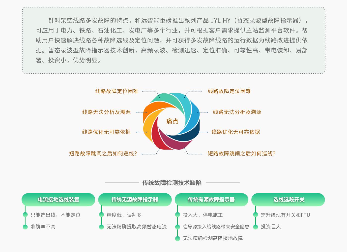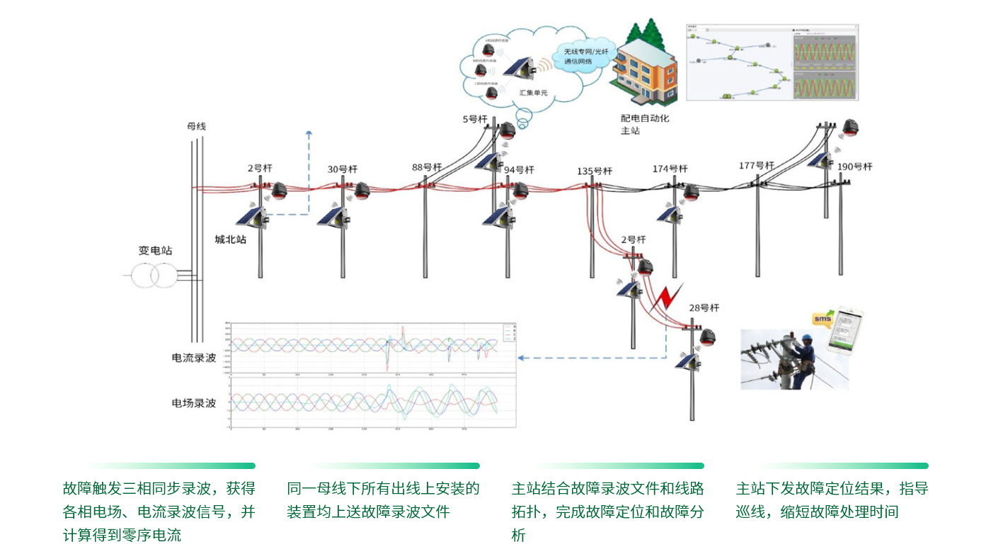 作為智能電網(wǎng)建設(shè)的重要環(huán)節(jié),配電網(wǎng)在電力系統(tǒng)中起著至關(guān)重要的作用。在我國(guó),配電網(wǎng)在整個(gè)電力系統(tǒng)中尚處于非常薄弱的環(huán)節(jié),配電網(wǎng)絡(luò)結(jié)構(gòu)復(fù)雜、線路長(zhǎng)、分支多,用戶(hù)遭遇的停電,90%以上由配電系統(tǒng)故障引起,其中瞬時(shí)性故障、弧光故障、高阻故障占比超過(guò)50%,且故障查找、分析和運(yùn)行數(shù)據(jù)的獲取非常困難。